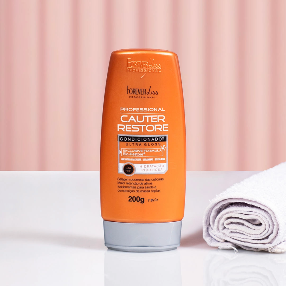 O Condicionador Cauterização Cauter Restore 200g possui fórmula especial à base de geleia real, ceramidas e Queratina brasileira. Promove a estruturação da fibra capilar, regenerando os fios ressecados e fragilizados por química. Facilitando o pentear e selando completamente as cutículas deixando os fios mais emoliente, com brilho e maciez.